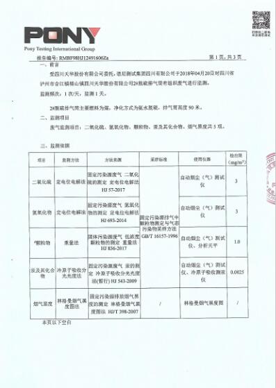 四川天華股份有限公司動(dòng)力車間2#脫硫塔2018年1季度廢氣委托監(jiān)測(cè)報(bào)告