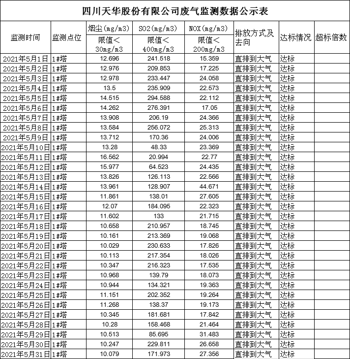 四川天華股份有限公司5月廢氣監(jiān)測公示