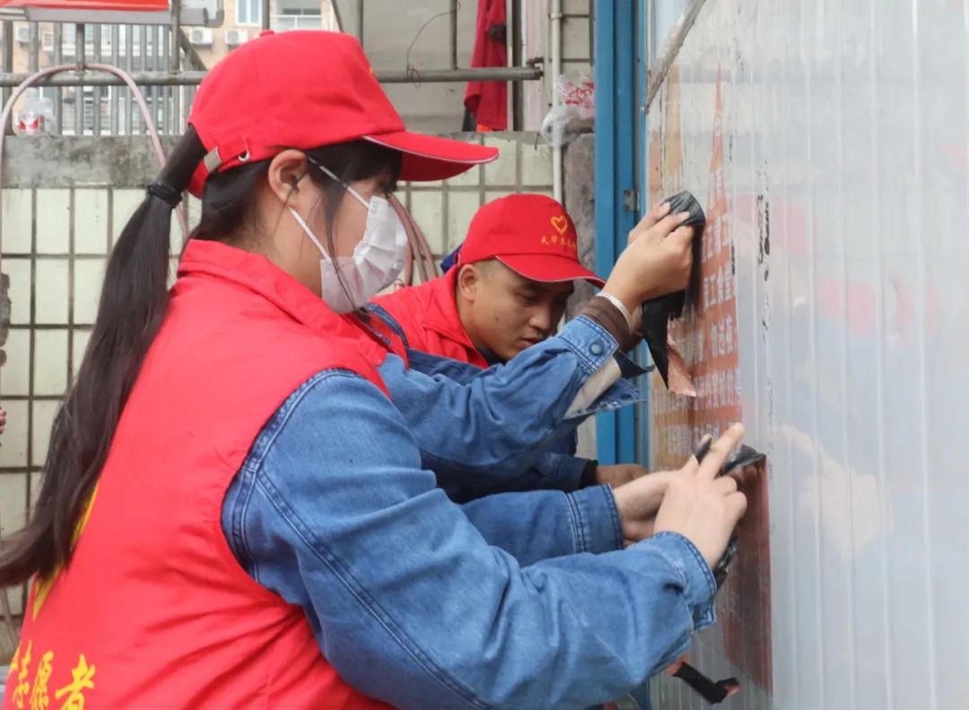 活動中,志愿者們兵分兩路清除裝置區(qū)附近雜草和公司駐地周邊小廣告?;顒蝇F(xiàn)場,隨處可見志愿者們不放過任何一個死角,一絲不茍賣力工作的身影。通過志愿者們的辛勤工作,裝置區(qū)域地面與公司駐地周邊墻面變得干凈、整潔,“舊貌”換“新顏”。