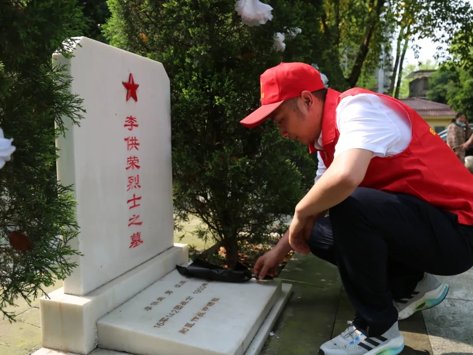 活動最后,志愿者們還擦拭烈士墓碑,清掃樹木枯枝。經(jīng)過辛勤勞動,烈士陵園變得更顯整潔、肅穆。
