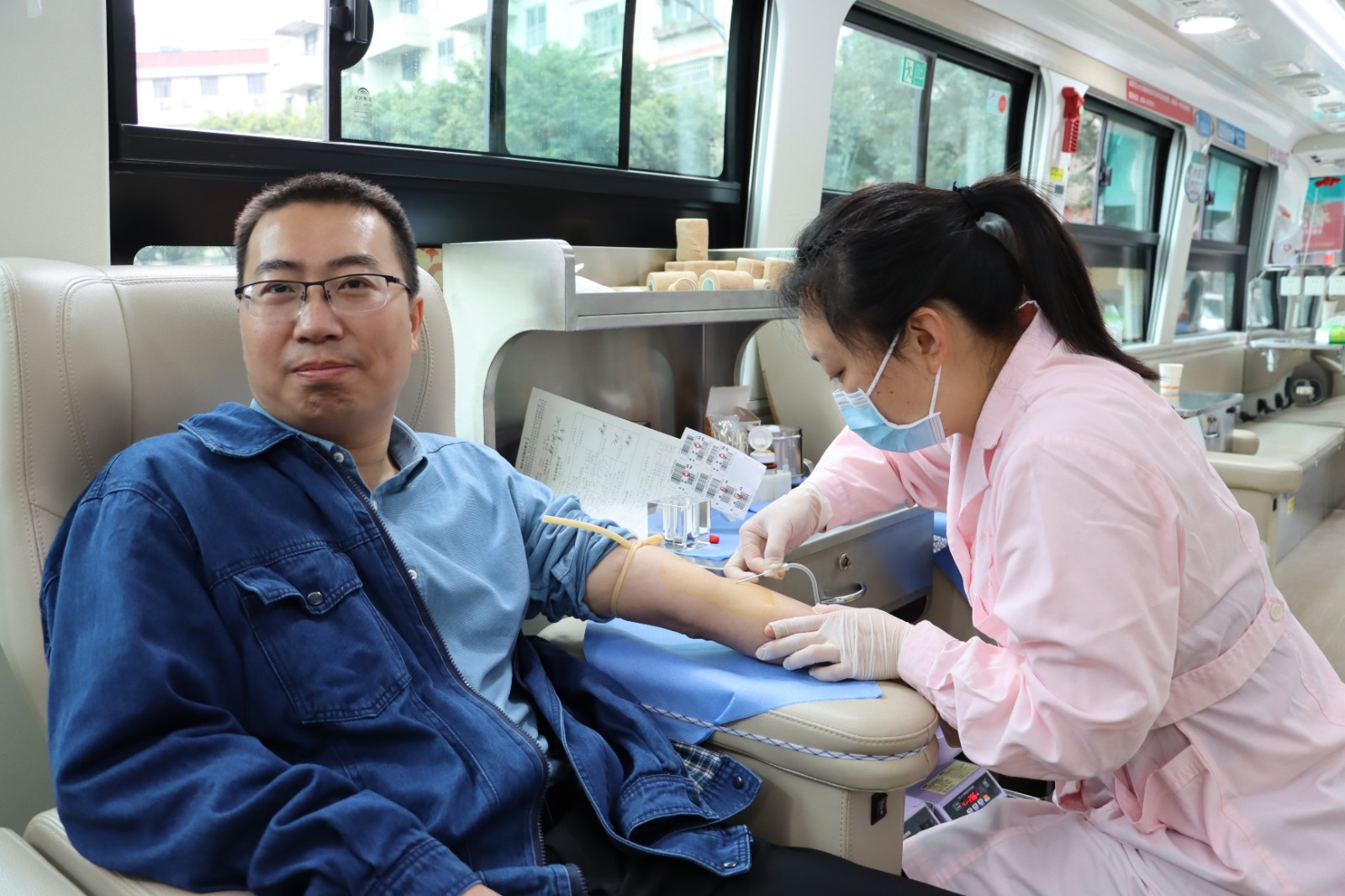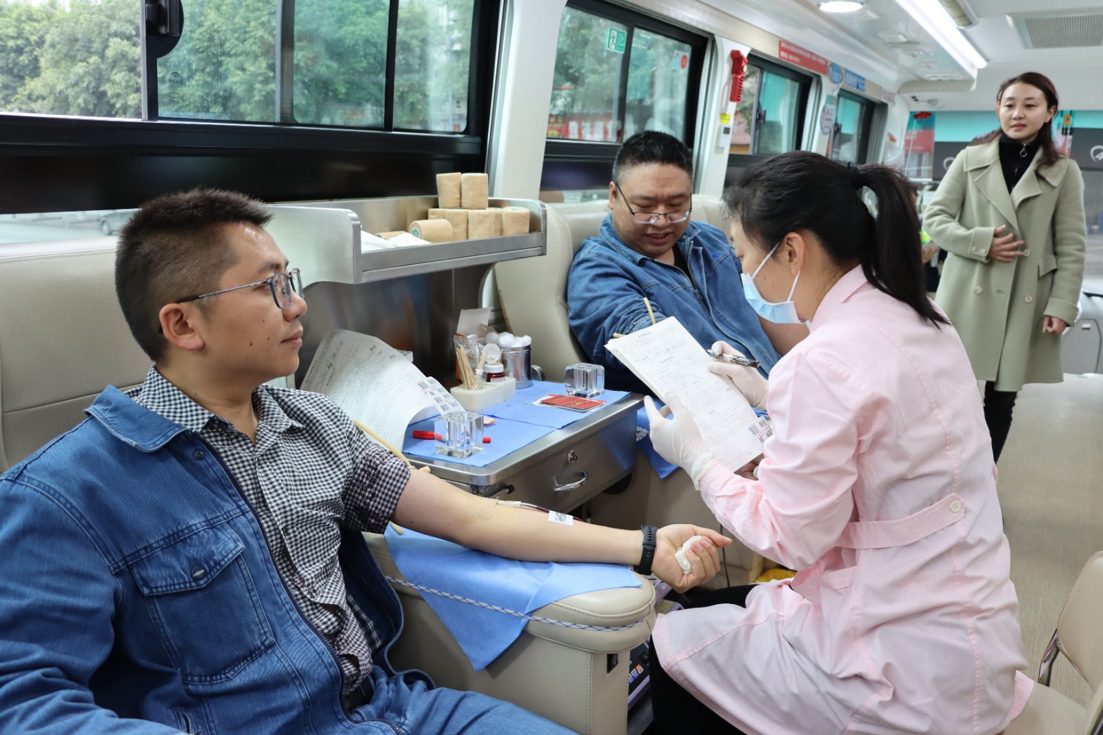 陽春三月,天氣雖然還有些寒冷,但春寒沒能阻擋天華人獻血的熱情。在醫(yī)務人員的引導下,來自集團職能部門和生產(chǎn)車間的職工列隊接受中心血站安排的獻血準備工作。參與獻血的志愿者有集團高層領(lǐng)導,也有中層管理人員和一線職工。大家認真填寫獻血登記表、測量血壓、配合抽血化驗等,在確定符合獻血條件后依次登上采血車接受采血。