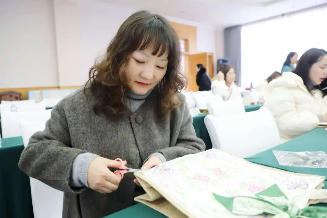 隨后,活動進入巧手慧心·女工創(chuàng)藝”DIY手工制作環(huán)節(jié)。女職工們在帆布袋上盡情揮灑創(chuàng)意。她們或低頭思考,或相互交流,一個個色彩斑斕、獨具特色的手繪布袋在她們手中逐漸成形。女職工們的臉上洋溢著喜悅和自豪,更體現(xiàn)了對生活的熱愛和追求。